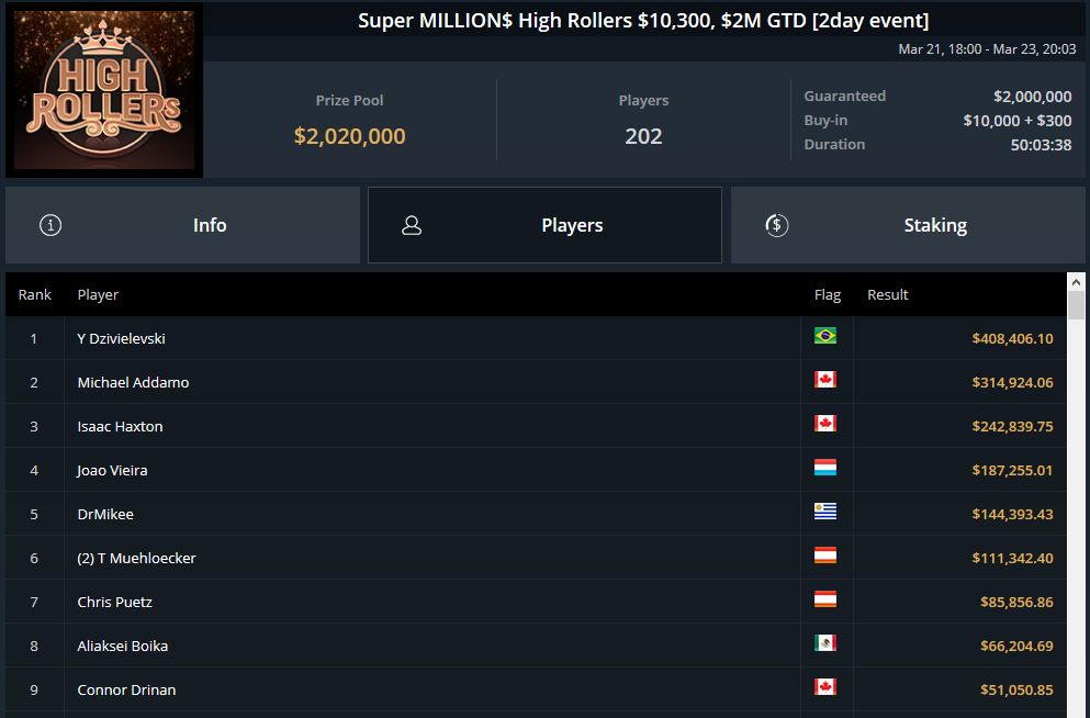 41. edicijo Super MILLION$ na GG-ju (GGPoker, Natural8, 2bet4win) je osvojil Yuri Dzivielevski in Michaelu Addamu preprečil četrti MILLION$ naslov, …