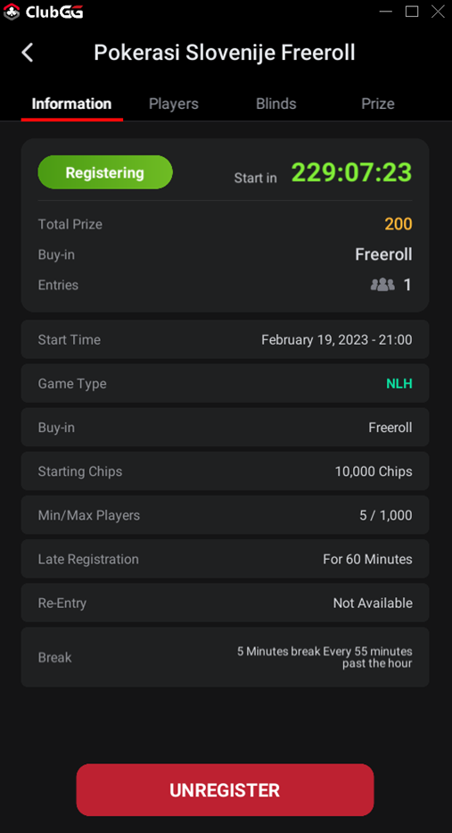 Za vse slovenske pokeraše je na 19.2.2023 na sporedu prvi od mnogih prihodnjih freerollov. Vsak igralec, ki se prijavi na ClubGG prek nas, bo prejel geslo, s katerim se lahko vpiše na turnir.