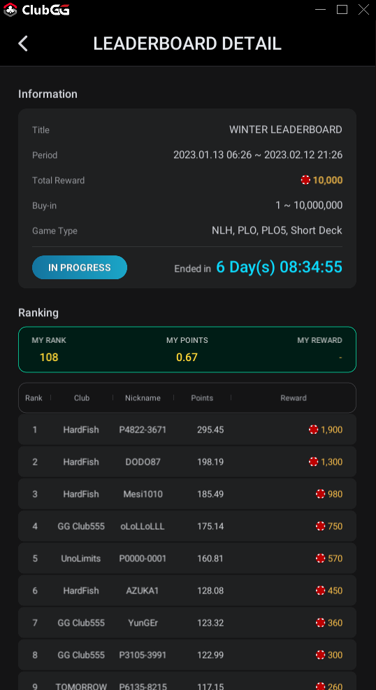 Aplikacija ClubGG vsak dan organizira turnirje z garantiranimi skladi do 10.000 $.