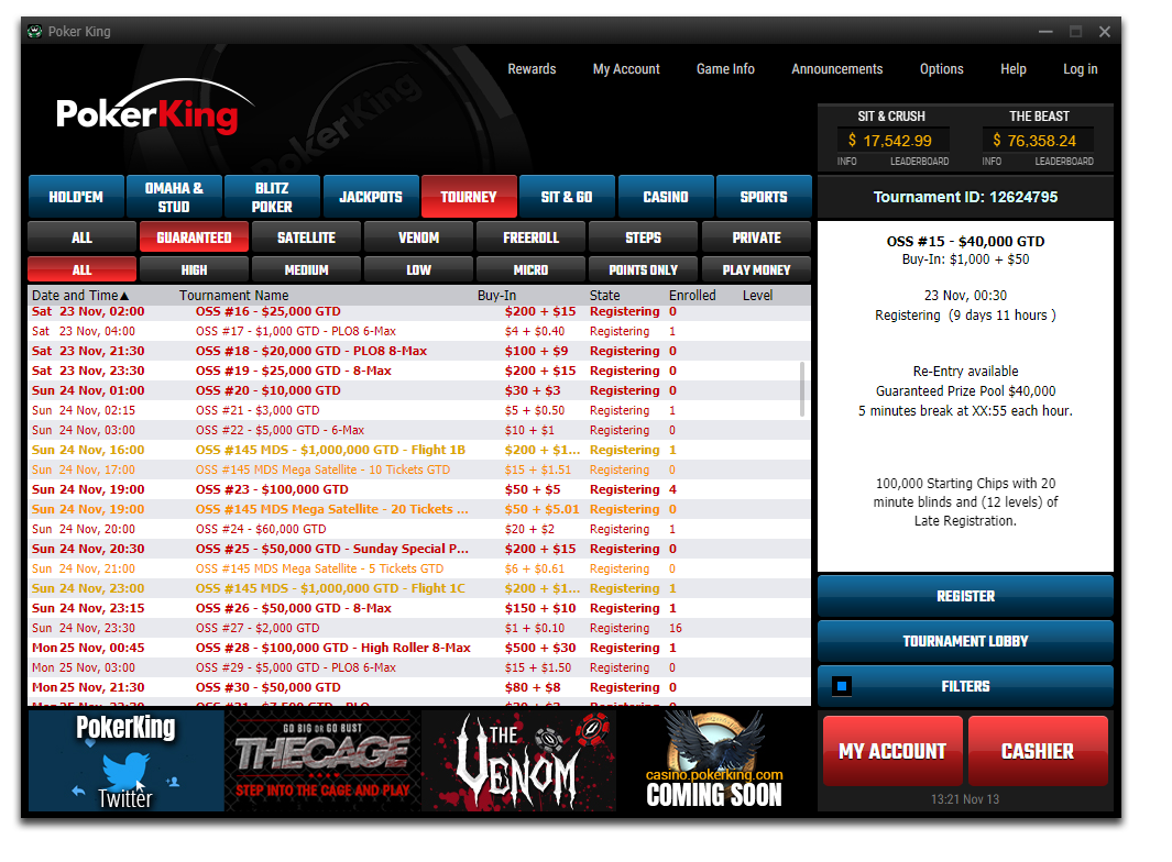 Vsak dan potekajo sateliti za vse večje turnirje, za vikend pa tudi MEGA sateliti.