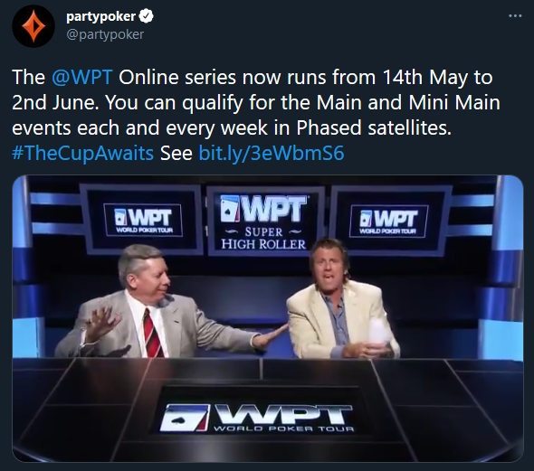 World Poker Tour Online Series na partypokru se začne 14. maja 2021, igralci pa bodo dobili še eno priložnost, da osvojijo naslov WPT z glavnim turnirjem, ki bo imel garantiran nagradni sklad kar 3 milijone dolarjev.