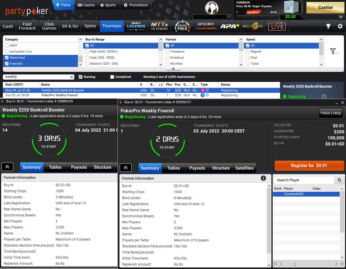 Pridružite se partypokru še danes, igrajte v julijskih freerollih in si zgradite poker bankroll povsem brezplačno.