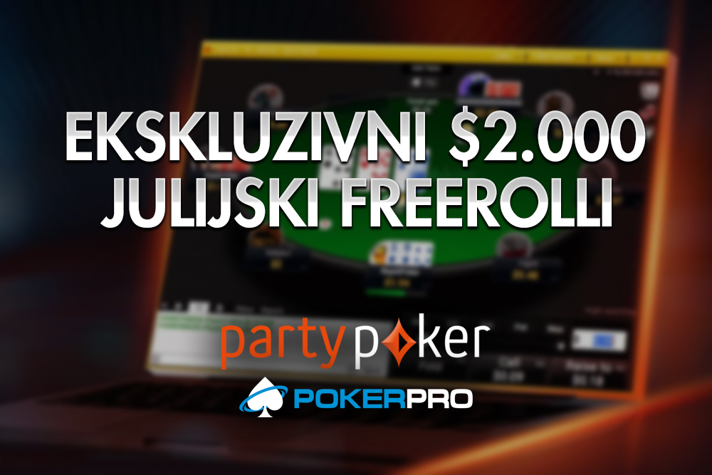 Pred nami je še en poletni mesec z veliko odličnimi promocijami na PokerProju. V juliju boste tako lahko vsi, ki ste registrirani na partypoker preko PokerProja, uživali v $2.000 vrednih Freerollih, ki bodo na sporedu vsako nedeljo in ponedeljek skozi celoten mesec.