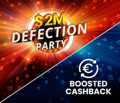 Želite prejeti dodatnih 20% cashbacka? Potem brž pod pod rubriko “Promotions”, kjer boste našli “Defection Boosted Cashback” in preprosto kliknite na gumb “Opt in”. Cashback, ki ste ga zaslužili, boste prejeli na svoj partypoker račun 24 ur kasneje.
