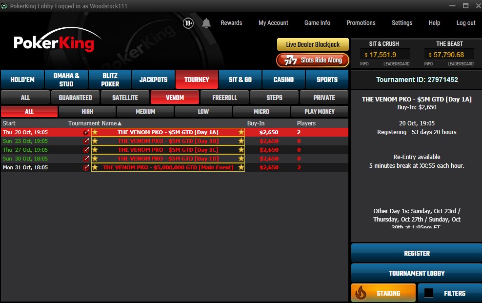 Znan je datum začetka največjega progresivnega knockout turnirja v online pokru. $5 milijonski garantirani Venom PKO bo na sporedu od 20. oktobra …