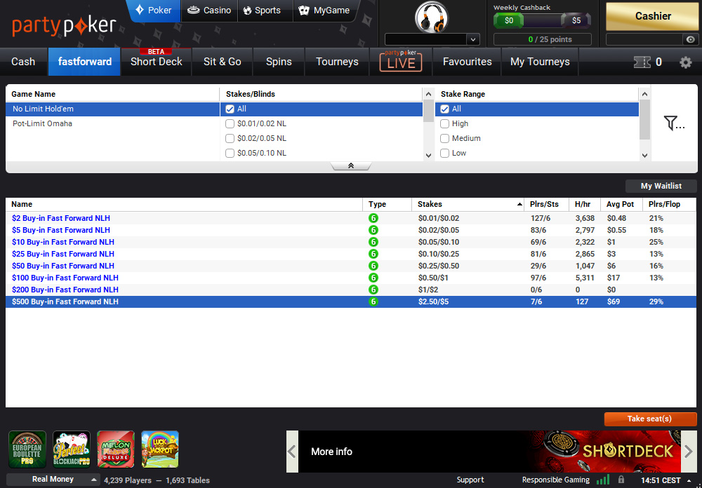 Na PartyPokru do konca meseca poteka zanimiva promocija Cash Splash, kjer bo v obdobju 4 tednov podeljenih $500.000! Nagrade boste imeli možnost osvojiti vsi in sicer na dva načina – Cash Splash Hours in Cash Splash Challenges. Preko obeh imate možnost osvojiti denarne nagrade, MTT in Spins vstopnice!