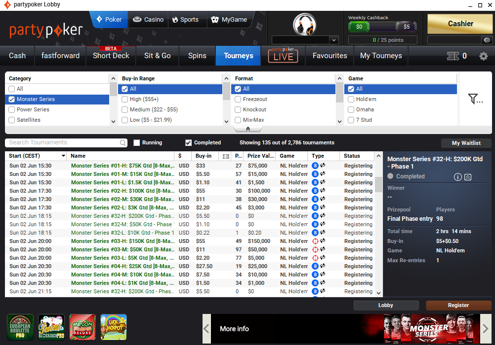 V času serije boste na PartyPokru našli prav posebne Monster Series SPINS-e, kjer si boste lahko priigrali vstopnice za dotično serijo.