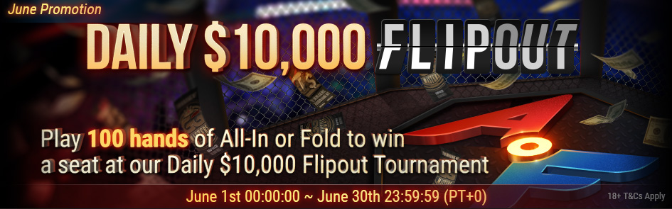 Vse kar morate storiti je, da odigrate 100 handov All-in or Fold igre in prejeli boste vstopnico za dnevni $10.000 Flipout turnir.