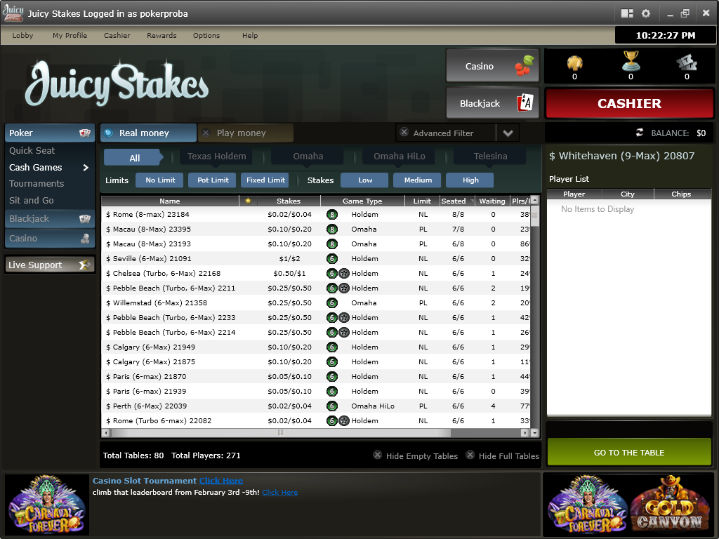 Poker klient: Juicy Stakes ali Intertops Poker (Horizon mreža)