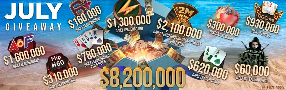 Pri GG mreži niso pozabili niti na Omaha igralce. Igrajte svoje najljubše Omaha denarne igre, zbirajte točke in se potegujte za denarne nagrade. Tudi tukaj bo v juliju skupno podeljenih kar $750.000!