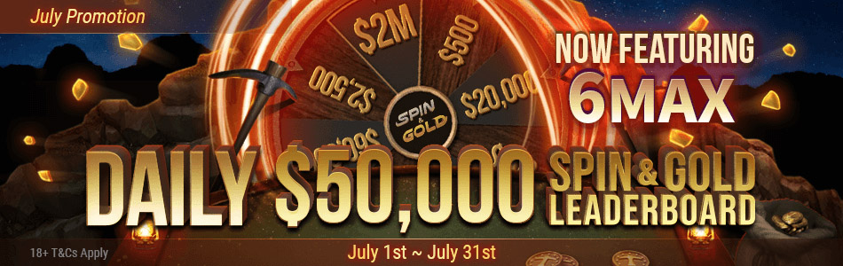 Sedaj je Spin&Gold tudi v najpopularnejšem 6Max formatu, kjer lahko osvojite nagrado do 4 milijona dolarjev! Prijavnine so 1 $, 10 $ in 100 $, z multiplikatorjem do 200.000x.
