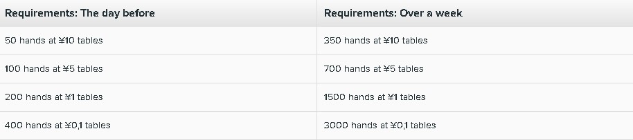 Ta mesec se bo tradicionalni AoF festival spremenil v Giveaway, kjer boste lahko osvojili vstopnice za turnirje Good Game Series 2. Vsi igralci, ki bodo dnevno dosegli 5000 točk, bodo avtomatsko registrirani v Giveaway turnirje, kjer bodo podeljene te vstopnice. Vse bo potekalo avtomatsko, tako da vse kar morate storiti je, da igrate na AoF mizah in zbirate točke, glede na spodnjo razpredelnico: