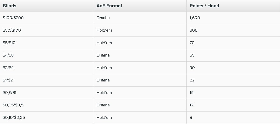 Ta mesec se bo tradicionalni AoF festival spremenil v Giveaway, kjer boste lahko osvojili vstopnice za turnirje Good Game Series 2. Vsi igralci, ki bodo dnevno dosegli 5000 točk, bodo avtomatsko registrirani v Giveaway turnirje, kjer bodo podeljene te vstopnice. Vse bo potekalo avtomatsko, tako da vse kar morate storiti je, da igrate na AoF mizah in zbirate točke, glede na spodnjo razpredelnico: