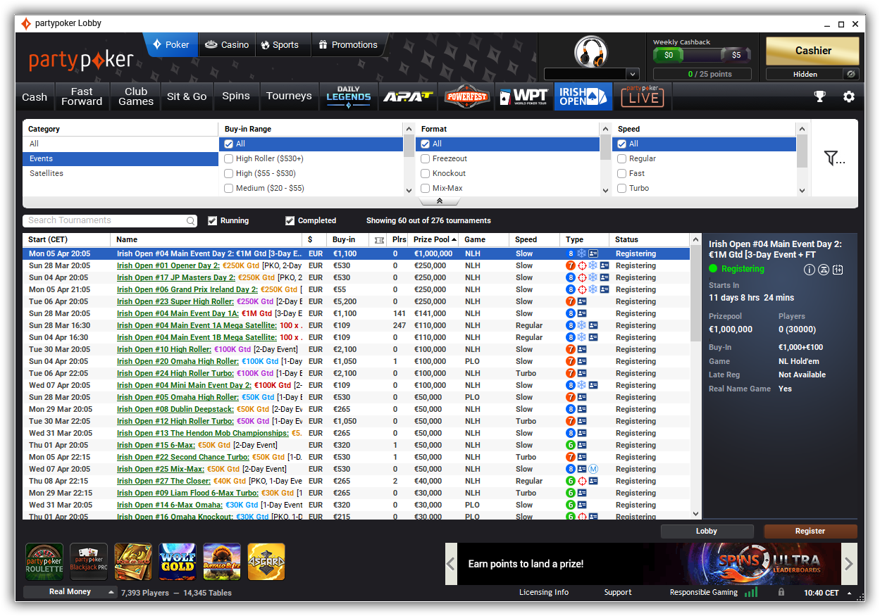 Največje spletne serije pokra še naprej prihajajo na partypoker. Irish Poker Open je najnovejši festival, ki se je prebil na splet in partypoker daje igralcem z vsega sveta priložnost, da tekmujejo.