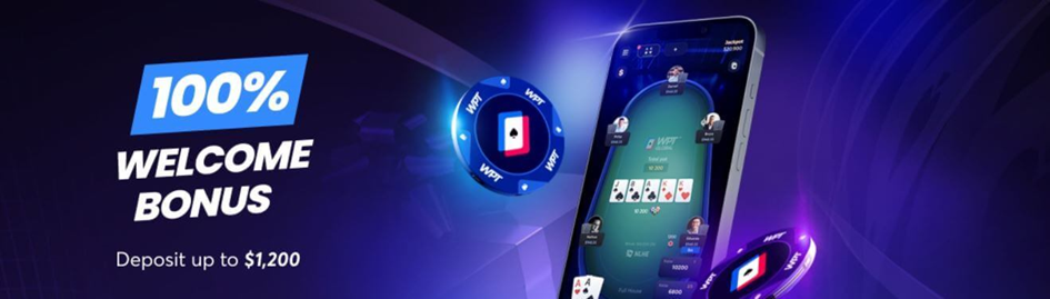 V primerjavi z drugimi poker stranmi ponuja WPT Global zelo radodaren bonus dobrodošlice – 100 % do 1.200 $. Če se želite kvalificirati, morate položiti najmanj 20 USD.
