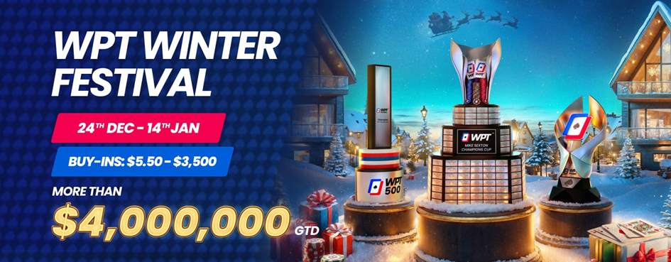 Če se sprašujete, katera poker stran je najboljša za začetek vaše poker poti v letu 2024, je ta odgovor WPT Global, saj je njihov zimski festival s 4 milijoni dolarjev garantiranega sklada še vedno v polnem teku. Ta ogromna serija bo potekala do 14. januarja in vam ponuja veliko priložnosti za odlične rezultate za začetek leta.