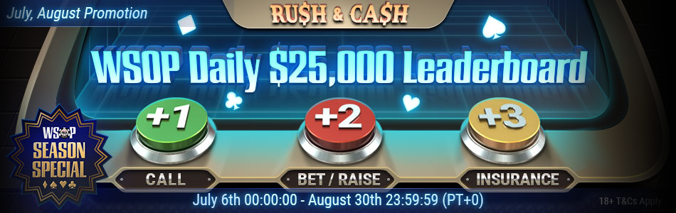 Julija in avgusta bodo vsak dan med igralce Rush & Cash razdelili 25.000 $, skupno pa kar 1.400.000 $ v WSOP vstopnicah.