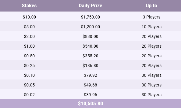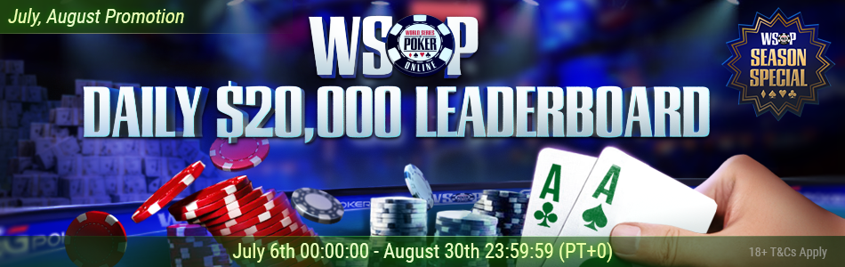 Praznih rok ne boste ostali niti igralci z navadnih denarnih Hold’em miz. Preprosto igrajte cash game in si prislužite točke ter sodelujte v 20.000 $ vrednem leaderboardu. Prav tako bodo pri tej promociji 20-tisočakov razdelili v vstopnicah za WSOP. Skupaj bodo med igralce razdelili kar 1,1 miljona dolarjev nagrad.