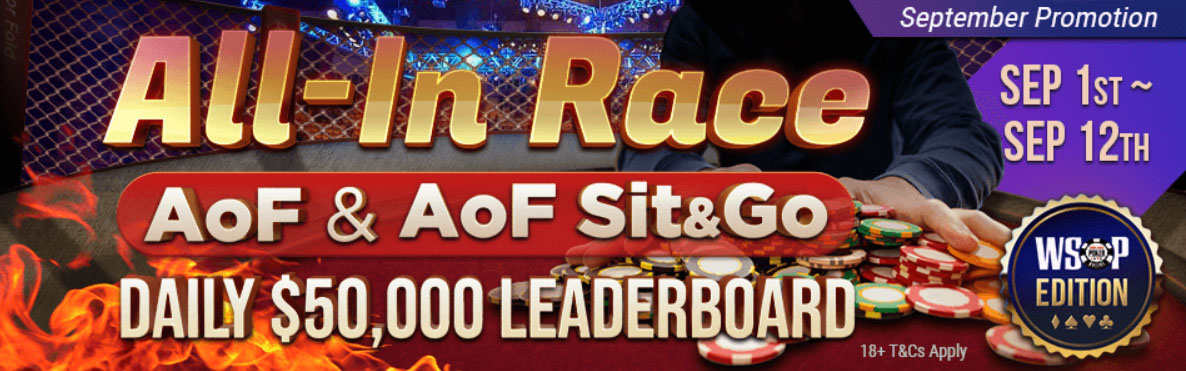GG v septembru vrača svojo dnevno All-In Race lestvico. Vse kar morate storiti je to, da igrate AOF vsak dan in poizkusite dobiti čim večje število točk, da si priskrbite delež $50,000 sklada vsak dan!