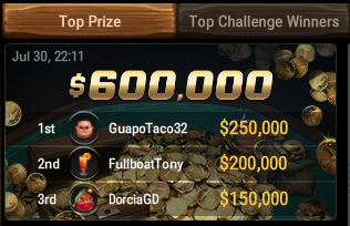 Na GG mreži (GGPoker, 2bet4win), kjer so trenutno vse oči usmerjene v WSOP Online, je kar malo v senci tega prvenstva bil podeljen Jackpot na Spin & Gold turnirjih v vrednosti 600.000 $! Trije srečneži, ki so se na turnir prijavili s 50 $ prijavnine so zavrteli 12.000-kratni multiplikator. Zmagovalec je prejel 250.000 $, drugouvrščeni 200.000 $ in tretjeuvrščeni 150.000 $.