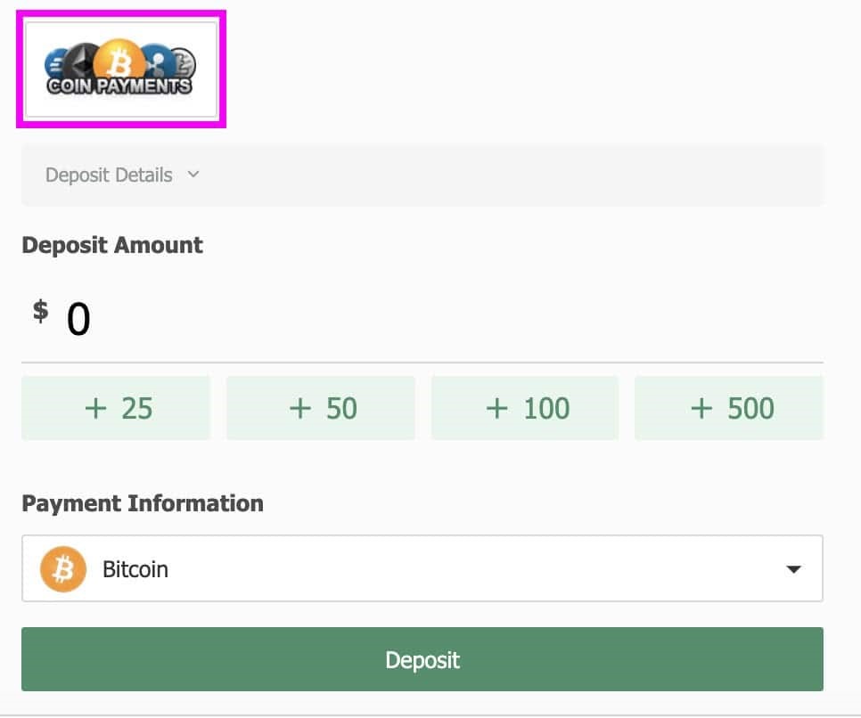 2. Naredite prvo kripto nakazilo prek CoinPayments. Za polog lahko uporabite Bitcoin (BTC), Tether (USDT) ali Ethereum (ETH).