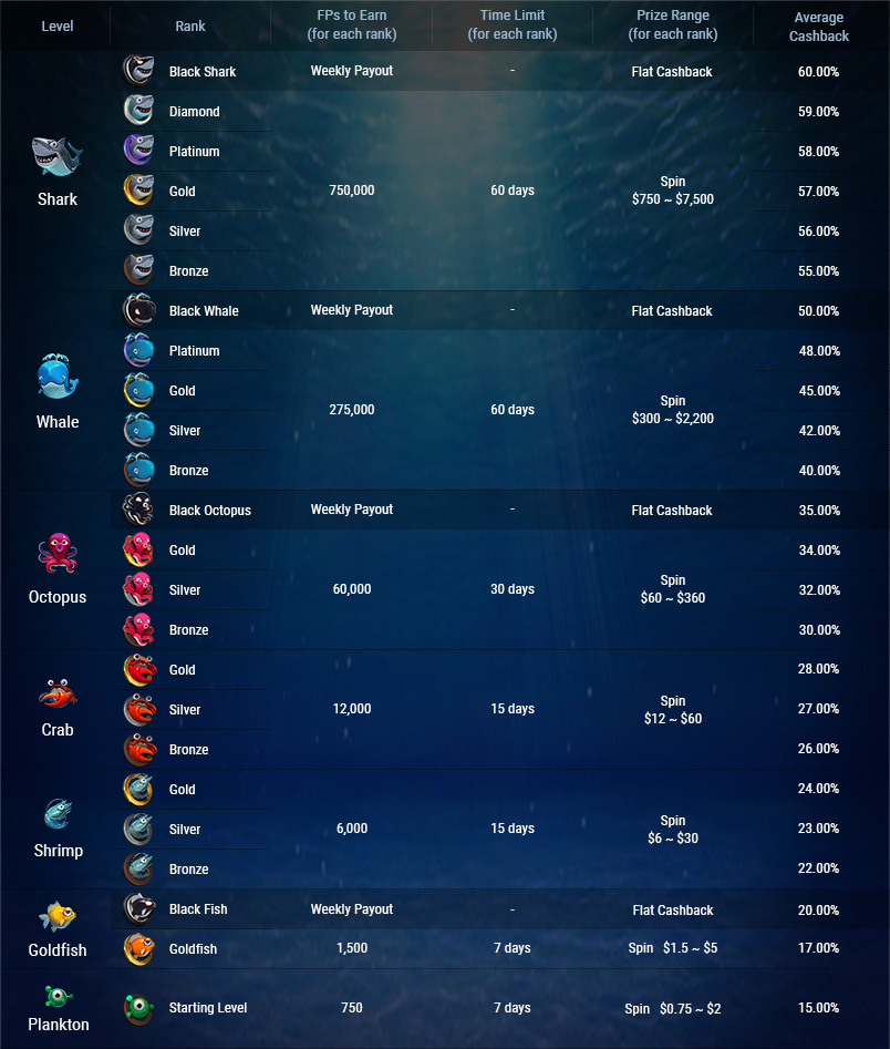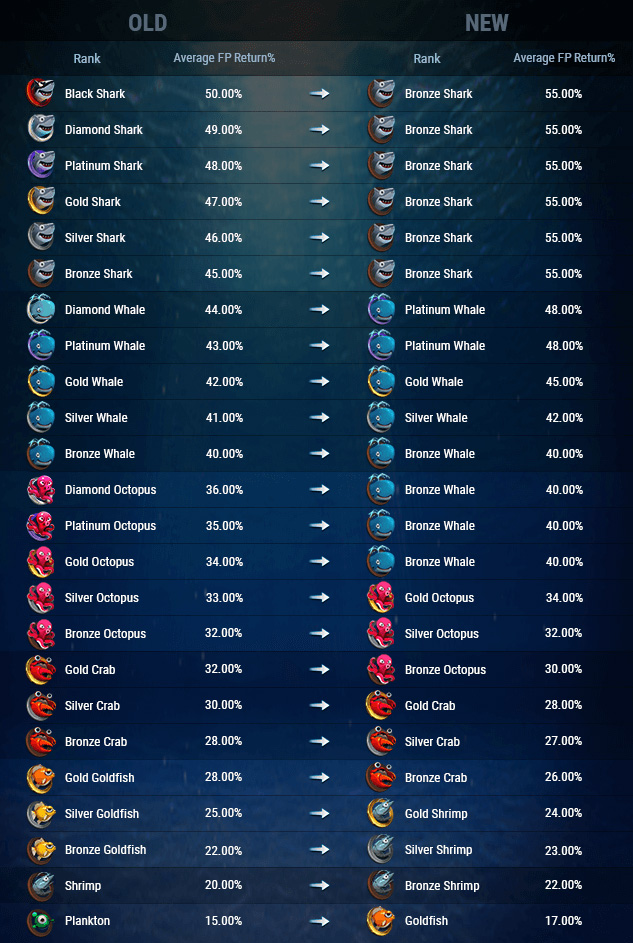 Spremenili pa so se tudi Fish Buffet statusi. Vsem, ki se bodo statusi zamenjali bo izplačana tudi povprečna nagrada po starem Fish Buffet sistem.