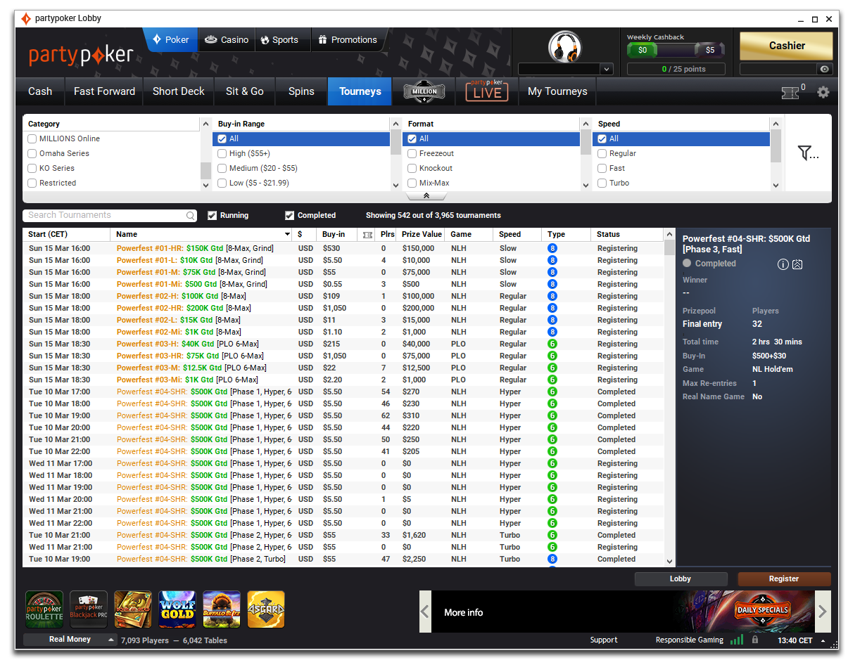 Do konca serije bodo na partypokru potekali prav posebni SPINS turnirji – POWERFEST Special Edition, kjer boste imeli možnost, da spremenite svojih $5 v $5.200 POWERFEST vstopnico!
