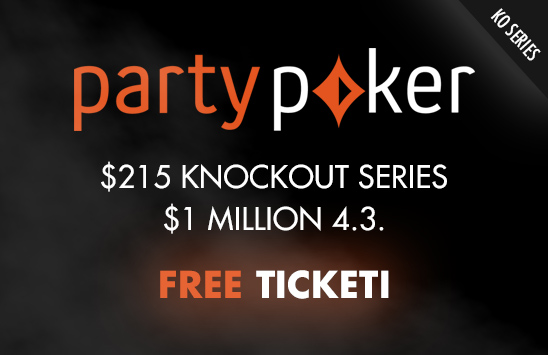Vsi novi uporabniki, ki se boste registrirali na PartyPoker med 27. februarjem in 2. marcem in do 23:59 tudi opravili celoten deposit v višini 325€ oziroma $500, boste poleg vseh promocij tako prejeli še $215 vstopnico za $1M GTD turnir KO serije.