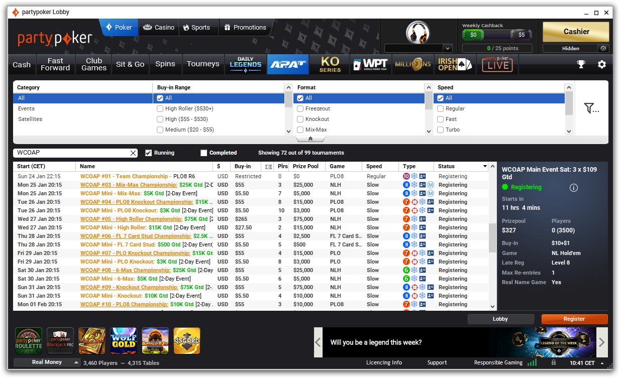 12. World Championship of Amateur Poker (WCOAP), ki bo potekal