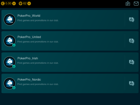 Pridružite se vsem štirim PokerPro klubom (ID: 102551, 102552, 102553, 102554) na Pokiu, saj vam to zagotavlja kar največ akcije in večje izbiro miz.