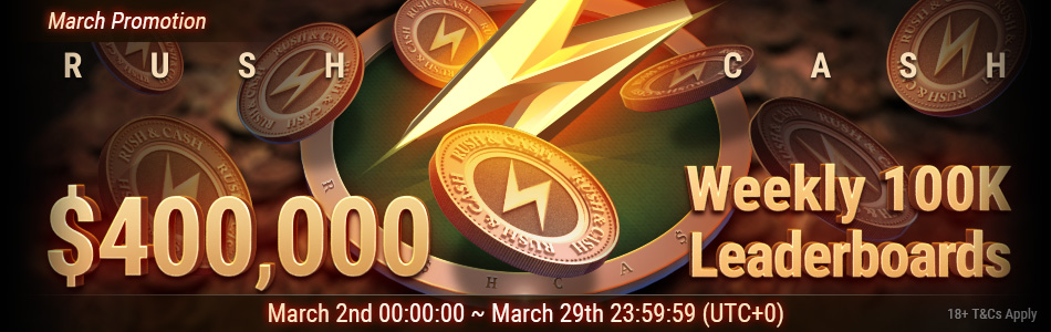 Tudi marca nas čaka zdaj že dobro ustaljena $400.000 Rush&Cash promocija, kjer bo vsak teden med igralce razdeljenih $100.000 na štirih različnih lestvicah.