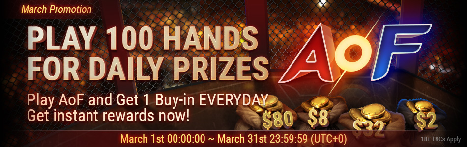 Odigrajte 100 handov AoF in pridobite 1 buyin vsak dan