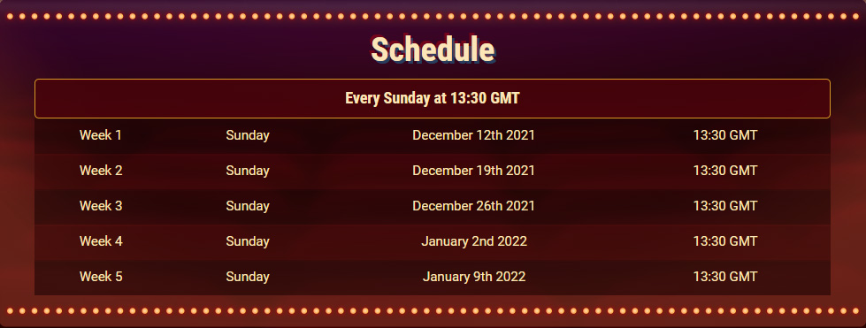 Vsak dan se v lobbiju prikaže aktivni gumb. S tem gumbom se lahko odpravite na kviz, sestavljen iz 10 vprašanj. Za vsako vprašanje imate na voljo 20 sekund. Akcija bo potekala vsako nedeljo do 9. januarja, 2022.