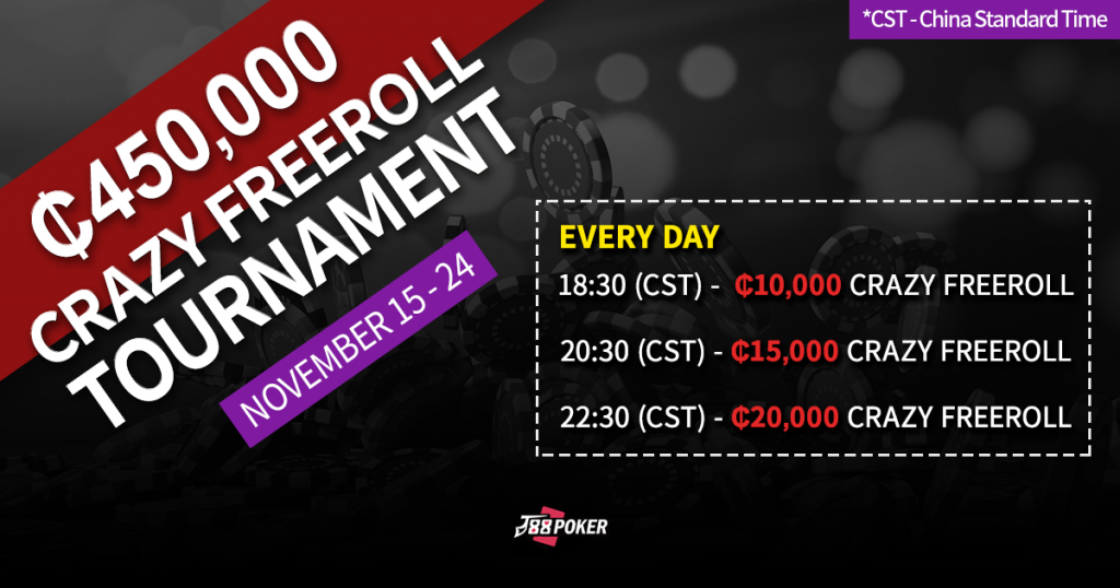 To pa še ni vse! Z igranjem na Crazy Freeroll turnirjih boste zbirali točke in najboljših 30 bo prejelo ₵6.000 tickete za J88PT Millionaire Main Event.