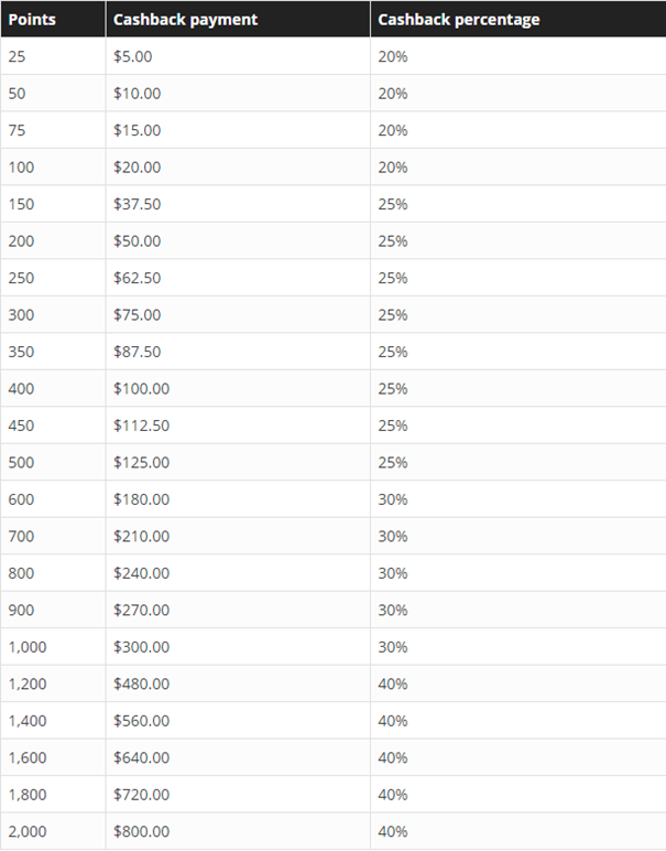 Vračilo denarja se poveča na 25%, če dosežete vsaj 150 točk, in 30%, ko dosežete skupno 600 točk.