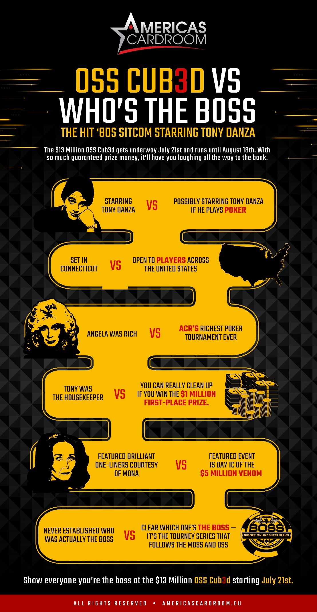 Pri Americas Cardroom so našli ogromno skupnih točk med svojo OSS CUB3D serijo in priljubljeno TV serijo Who’s the Boss, v kateri igra Tony Danza.