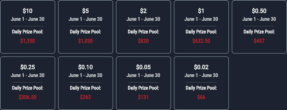 Lestvice bodo potekale na devetih različnih limitih, od $0,02 pa do $10.