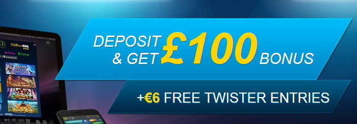 Novi igralci bodo ob prvem nakazilu prejeli £100 bonusa in pa 6 vstopnic za Twister igre (3x 1€ Age of the Gods Twister in 3x 1€ Twister vstopnice) ter 10 bonus spinov. Bonus se sprošča po delih, in sicer: