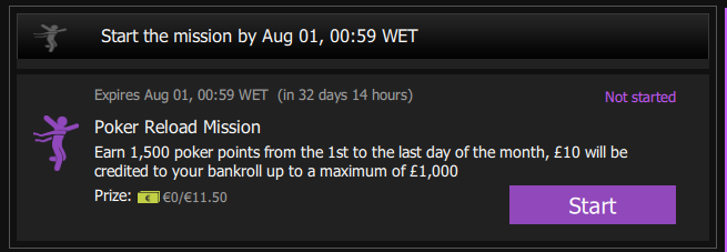 Ko aktivirate misije, boste za vsakih 1500 zbranih točk prejeli 11,5€ nagrade (£10,14). Za $1 plačanega rakea dobite 10 točk, 1€ 12,8 točk in za £1 17,8 točk. Pomembno je, da misije sprejmete preden začnete z igranjem v dotičnem mesecu, saj v nasprotnem primeru, zbrane točke ne bodo štele za bonus.