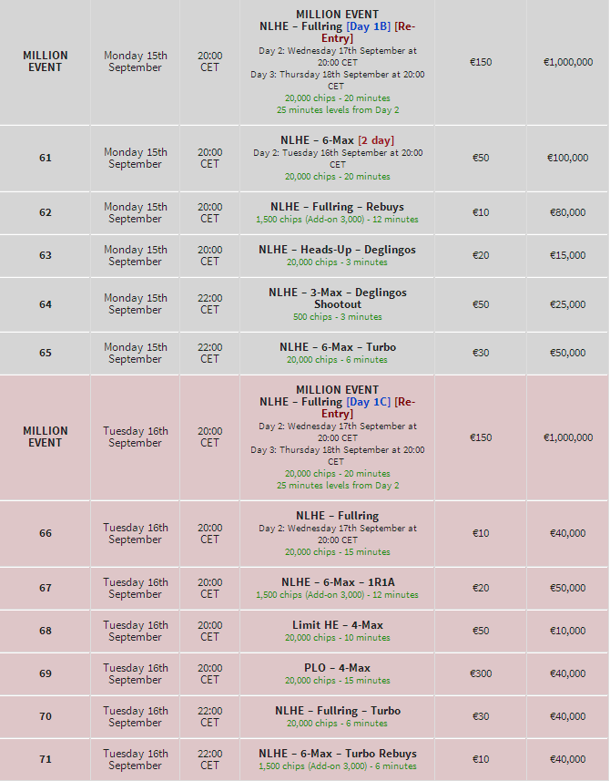 Winamax vam septembra ponuja dneve visokonapetostnega pokra, s serijo 76 posebnih turnirjev, vsak s svojo unikatno strukturo. Izplačanih bo najmanj 6…