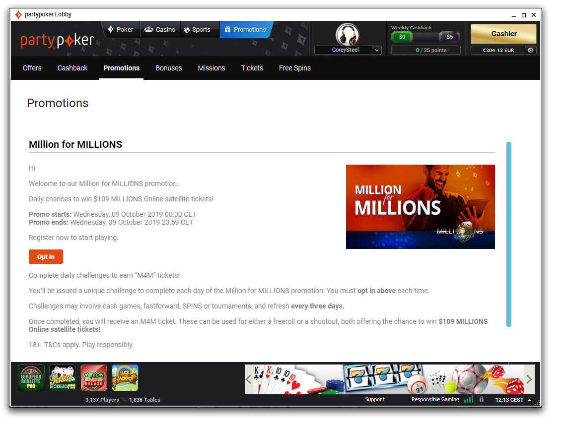 Vsi obstoječi uporabniki PartyPokra ste že brezplačno prejeli eno M4M vstopnico, kar pomeni, da se na MILLIONS Online lahko kvalificira prav vsak.