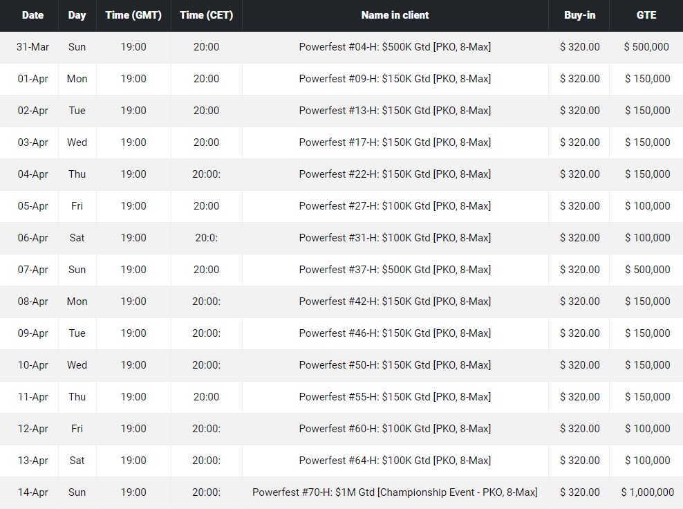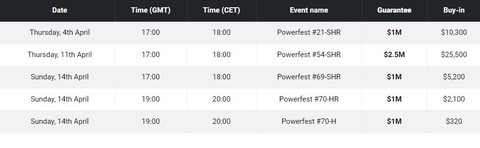Ta vikend se na PartyPokru zaÄŤenja vsem Ĺľe dobro znani POWERFEST, tokrat deveti v seriji. Trajal bo od 31. marca do 14. aprila in bo postregel z veÄ…