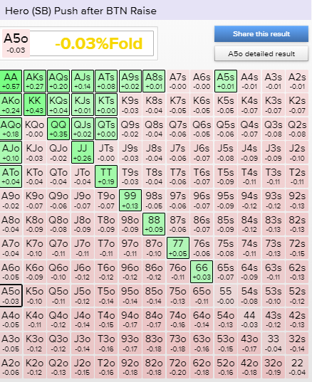 Tako bomo ugotovili naš fold equity in kakšen equity imamo, ko nas nasprotnik kliče. To dvoje pa nas pripelje do našega 3-bet shoving rangea.