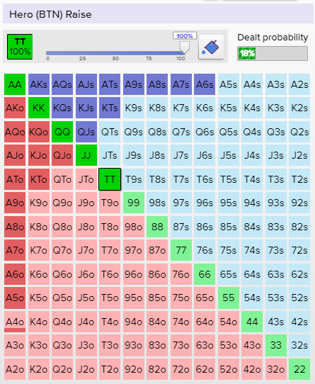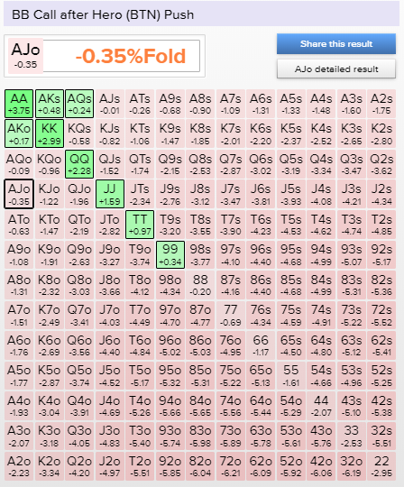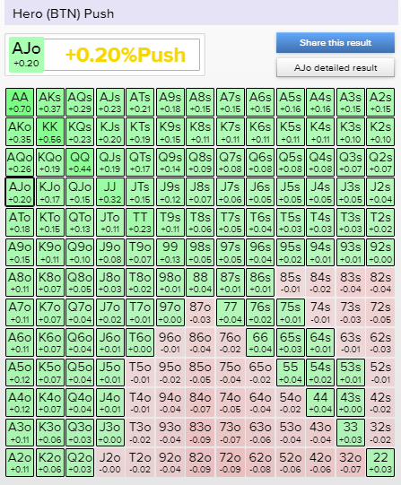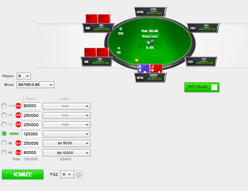 Kot kaže smo lahko zelo agresivni in porinemo celo 68% svojih handov, saj lahko small in big blind kličeta le 3,3% oziroma 4,3% svojih handov zaradi ICM-a.