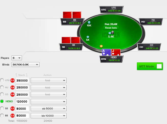 Vendar v situaciji, ko je vsak blind, ki ga ukrademo vreden veliko, je to še vseeno boljša opcija, kot če igramo push/fold strategijo, kjer bo zelo težko nabirati žetone.